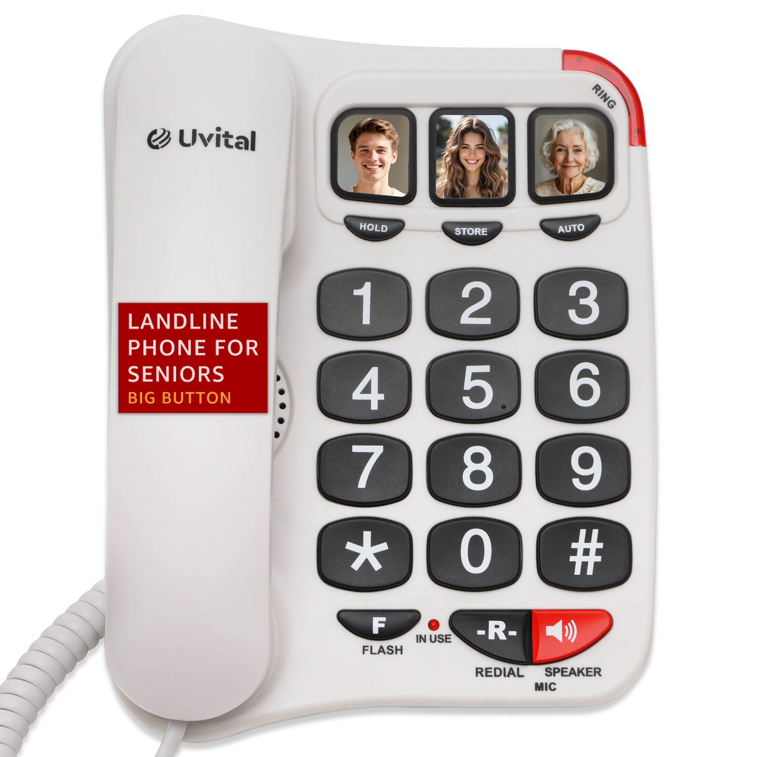 Uvital Big Button Phone for Seniors, White Senior Phone for Elderly Landline, Corded Landline Telephone for Home, Corded Landline Phones for Home - Amplified Ringer and Loud Speaker