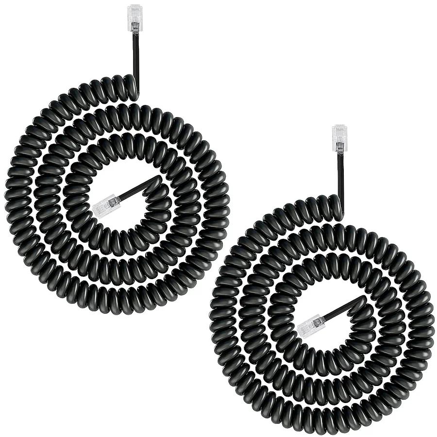 Uvital Telephone Phone Handset Cable Cord, Coiled Length 1.2 to 10 Feet Uncoiled Landline Phone Handset Cable Cord RJ9/RJ10/RJ22 4P4C(Black, 2 PCS)